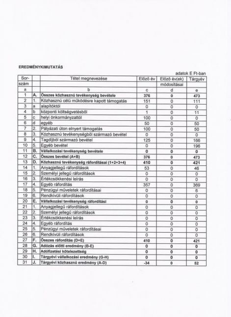 2009 évhez képest 131 ezer forinttal több összeggel gazdálkodhatott a szervezet. Az adott évben kapott bevételeket maradéktalanul felhasználtuk közhasznú céljainkra és működésre.
